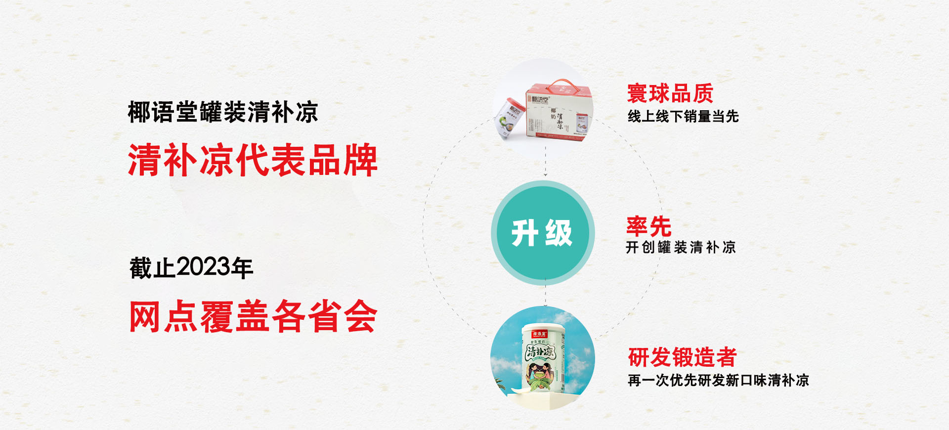 椰語堂公司介紹 椰語堂始創(chuàng)于2012年,是海南一家把海南清補(bǔ)涼為代表的特色小吃精致化、標(biāo)準(zhǔn)化并進(jìn)行連鎖發(fā)展的企業(yè),椰語堂專注于海南本土地域特色元素特別是椰子系列產(chǎn)品的深度研發(fā)。椰語堂被評(píng)為海南風(fēng)味小吃一級(jí)品牌名店,椰語堂多款小吃被評(píng)為海南名小吃、中國名小吃,并被選為中國地域十大名小吃代表品牌。椰語堂的全國門店分布在各高端商場、機(jī)場、郵輪、五星級(jí)酒店、動(dòng)車站、景區(qū)等。椰語堂清補(bǔ)涼被選為博鰲亞洲論壇專供產(chǎn)品、中國國際養(yǎng)生食品博覽會(huì)金獎(jiǎng)等殊榮,椰語堂清補(bǔ)涼在線下各連鎖賣場、盒馬鮮生、中石化易捷、中石油昆侖、全國30多家機(jī)場、五星、七星酒店等渠道銷售并成為政府及集團(tuán)采購產(chǎn)品。在電商線上渠道,椰語堂椰奶清補(bǔ)涼無論在銷量和好評(píng)方面是品類第一,是深受消費(fèi)者喜愛的高品質(zhì)產(chǎn)品。椰語堂是海南大學(xué)食品學(xué)院研究生實(shí)習(xí)基地,公司發(fā)揮椰語堂研究院優(yōu)勢,擁有產(chǎn)品研發(fā)方面的多項(xiàng)專利。椰語堂因?yàn)槠鋬?yōu)秀品質(zhì)及良好顧客體驗(yàn),被中央電視臺(tái)、湖南衛(wèi)視、旅游衛(wèi)視等多家衛(wèi)視、人民日?qǐng)?bào)、中國縣域經(jīng)濟(jì)報(bào)、新浪、騰訊、SSBD等國內(nèi)外媒體報(bào)道宣揚(yáng)。椰語堂是海南文化的傳播和弘揚(yáng)者,是海南地標(biāo)美食品牌的優(yōu)秀代表和海南地域文化的一張亮麗名片,同時(shí),椰語堂也是中國連鎖經(jīng)營協(xié)會(huì)會(huì)員單位。 more |